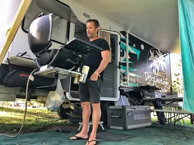 BBQARM is the must-have caravan and travel accessory for your outdoor barbecues. Australian designed and built on the Gold Coast, this space-saving innovation simply mounts to your caravan drawbar or rear bar to create a sturdy ‘out of the way‘ place for your BBQ. Swing it away when not using. With our new TOW-HITCH mount, use your BBQARM anywhere you travel with or without your caravan.