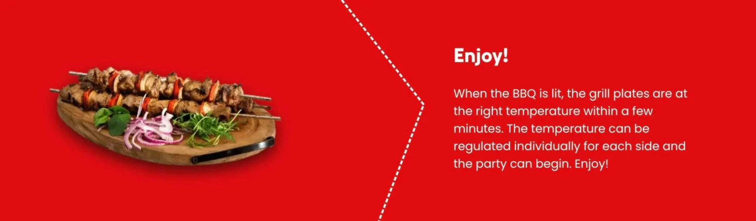 Each side of the nomadiQ BBQ can be controlled separately. Ideal for grilling at different temperatures. Switching off one side is also an option.