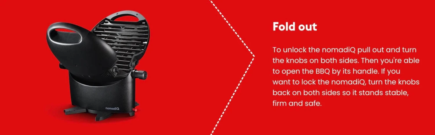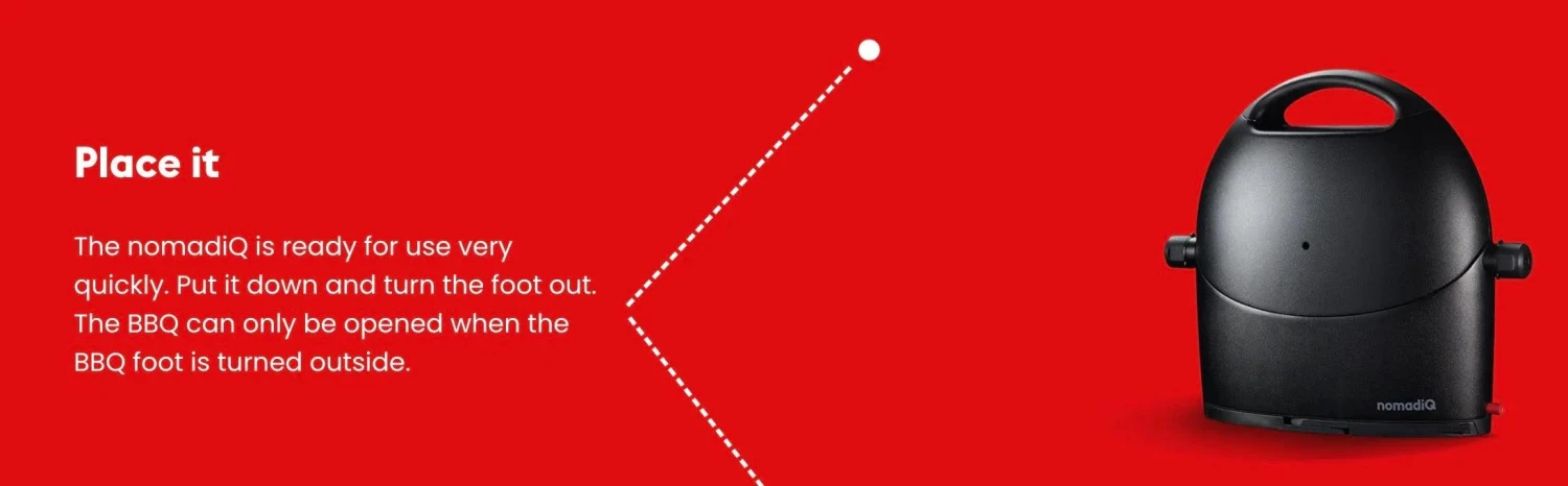 Unfold the nomadiQ BBQ, connect it, and you’re done! If it takes more than a minute, you’re doing something wrong.