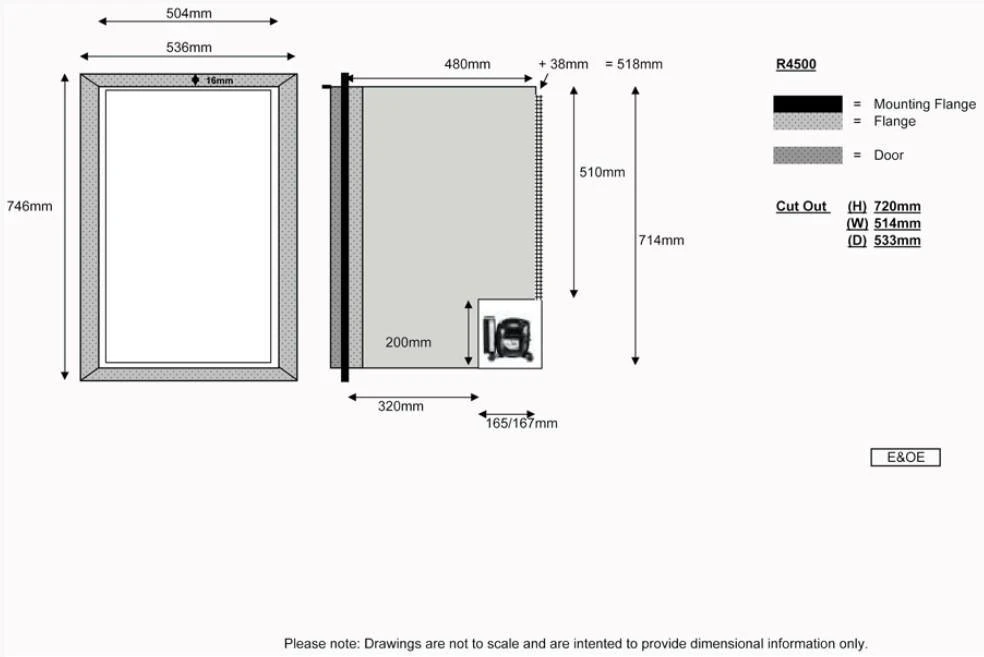 - 533 mm Depth (measured from the back face of the mounting flange)