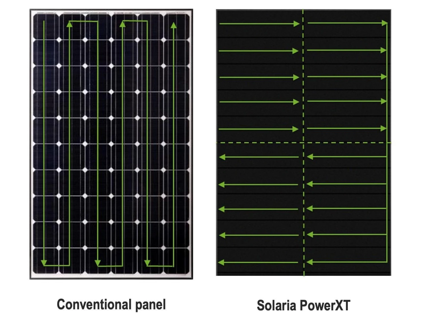 Solaria Power XT shingled panel. The Solaria Power XT panels have greater