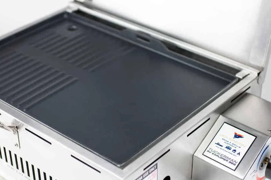 The Slimline model Tuckerman RV Explorer BBQ is a great space saving BBQ & stove top. The non-stick coated BBQ plate and removable full width fat tray makes it easy to clean too.